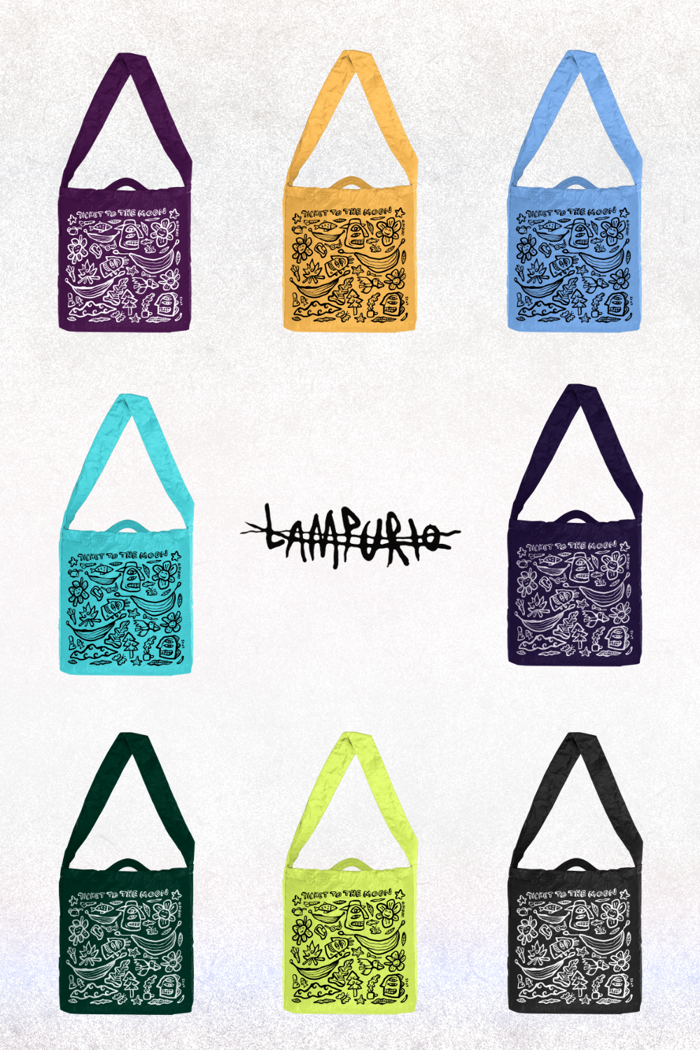 Exclusive Lampurio artwork printed on our ECO BAG Medium — each piece is a portable canvas, combining everyday function with meaningful visual storytelling.